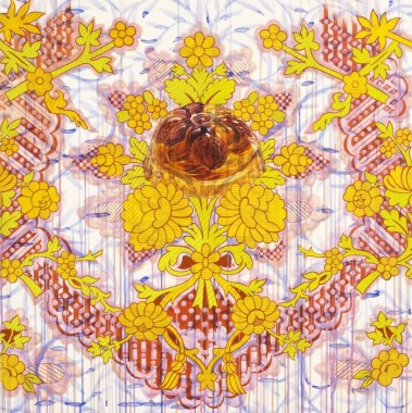 Mary Grigoriadis was one of Pattern Paintings earliest proponents, at least in New York, and arguably one of its best. Her paintings, elaborate in detail but simple in construction, conflated the decorative manners of many cultures, from Islamic to European Baroque to Native American, into a cohesive and distinctive style. Grigoriadis made that style yet more her own with a richly painterly approach and a luminous but restrained color selection. Heraldic but witty, Grigoriadis paintings at least those from the 1970s and 80s always brim with suggestion, and manage to seem at once highly animated and anchored fast, lightly conceived and massively built. Even as she allowed herself a greater fluidity and even asymmetry in her work of the 80s, Grigoriadis maintained this delicious variety of reference and sensation. She has apparently continued to evolve in this vein, but this small but rich review of her first two decades argued that Grigoriadis is one of the most underrated American painters of the post-Pop era. Peter Frank